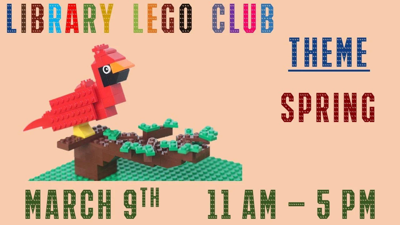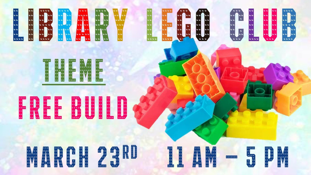 The Lego Club meets on the second and fourth Mondays of each month with a set theme. Children can stop in between 11:00 AM and 5:00 PM and build from prepared boxes of Legos and make something based on the monthly theme.
